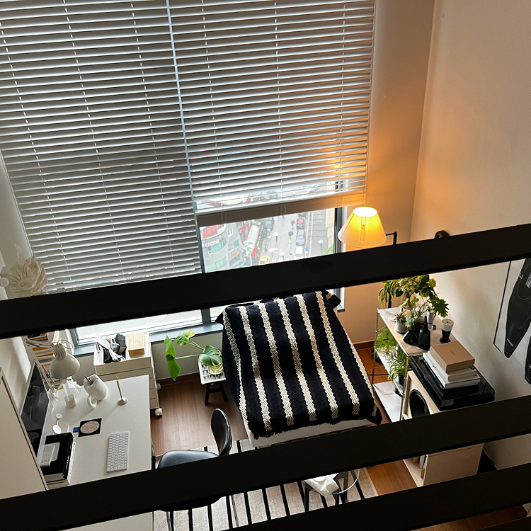 작업이 끝나면 2층의 침실로 올라간다. 매트리스, 침구, 조명,