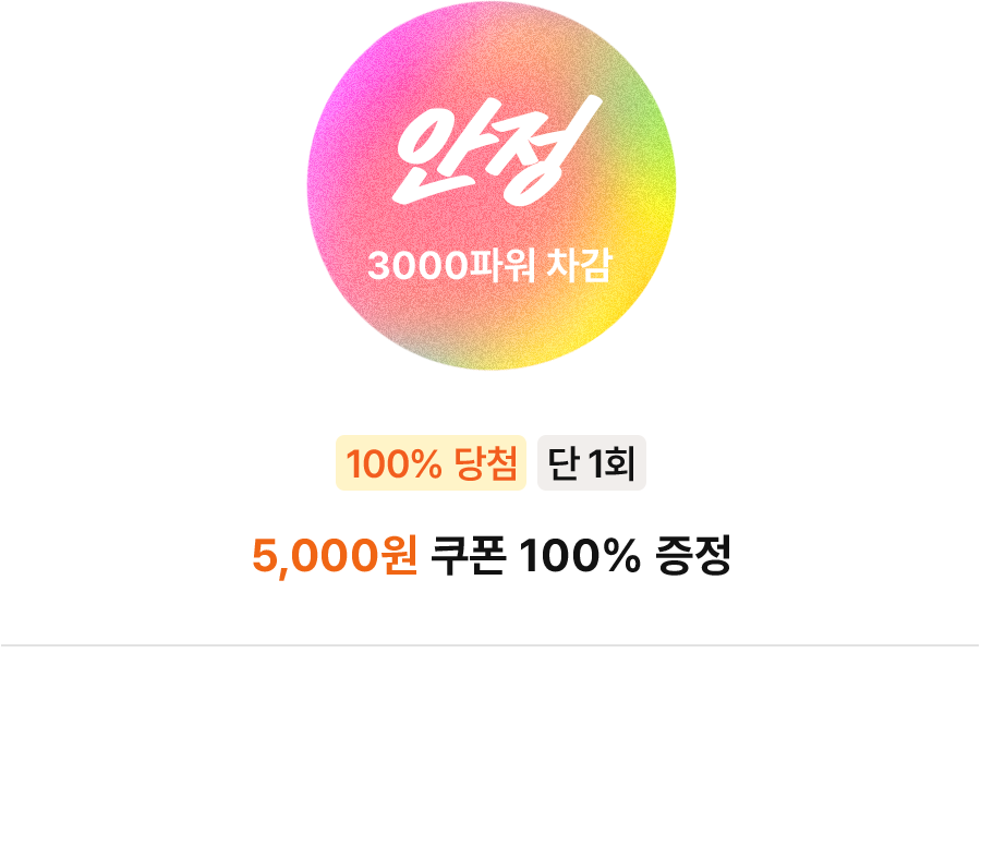 - '안정' 선택 시 5,000원 쿠폰을 100% 지급하며, 기간 내 1회만 참여 가능합니다.