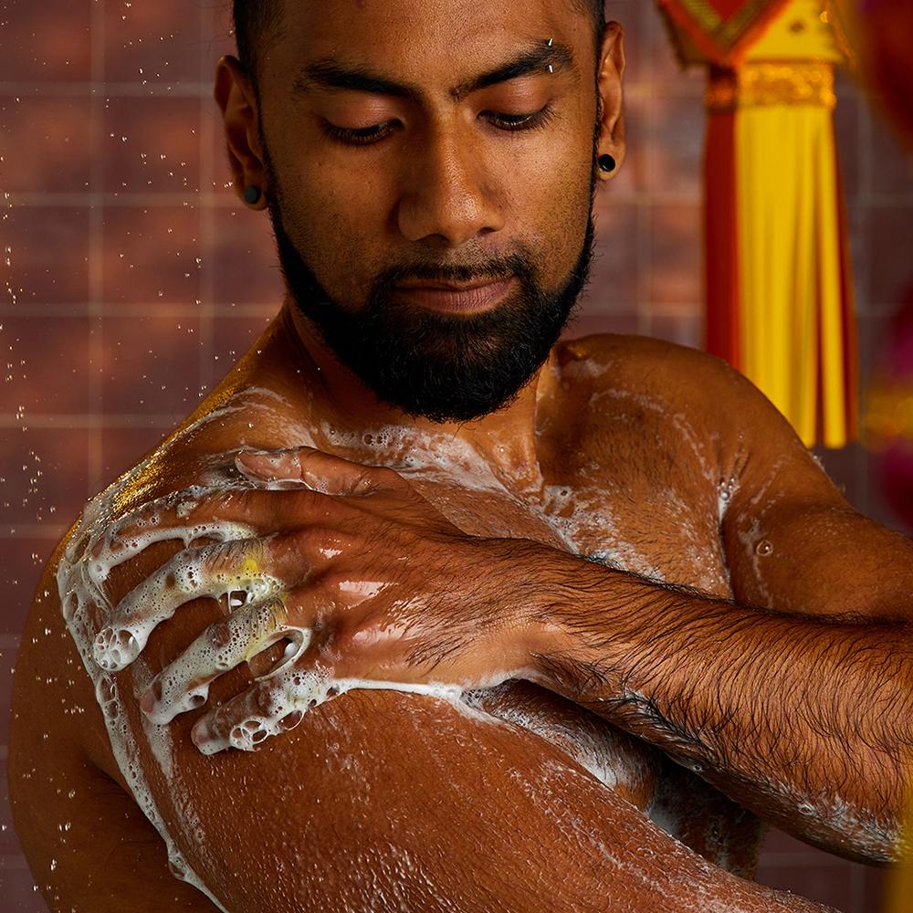샤워 타월을 이용해 거품을 내어 사용해 주세요.